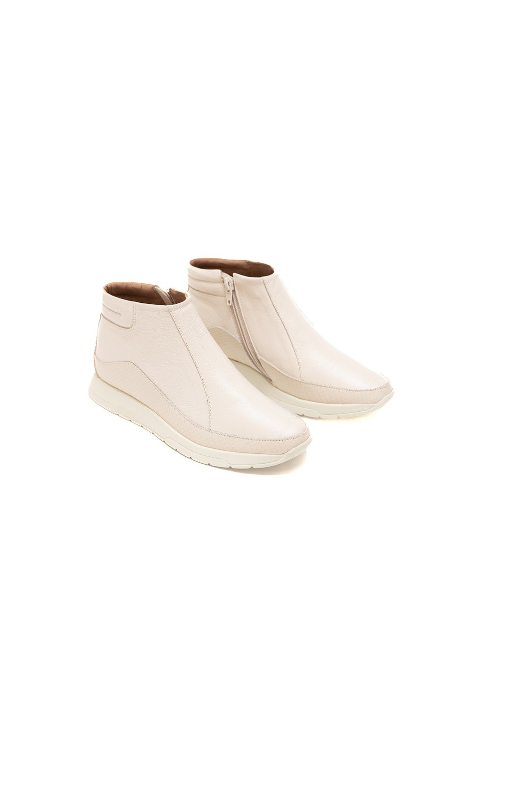 Botines Cherie en tono Offwhite, ideales para el día a día .Su diseño slip-on moderno y su suela flexible te brindan confort y un toque de elegancia luminosa para destacar con sutileza en cada paso que des