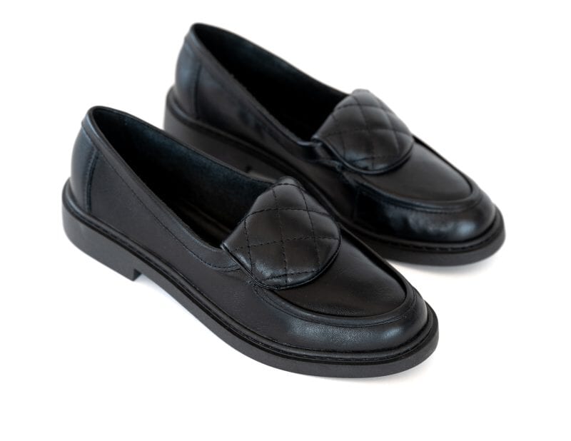 Diseño: Zapato tipo mocasín con pala adornada y punta cuadrada.