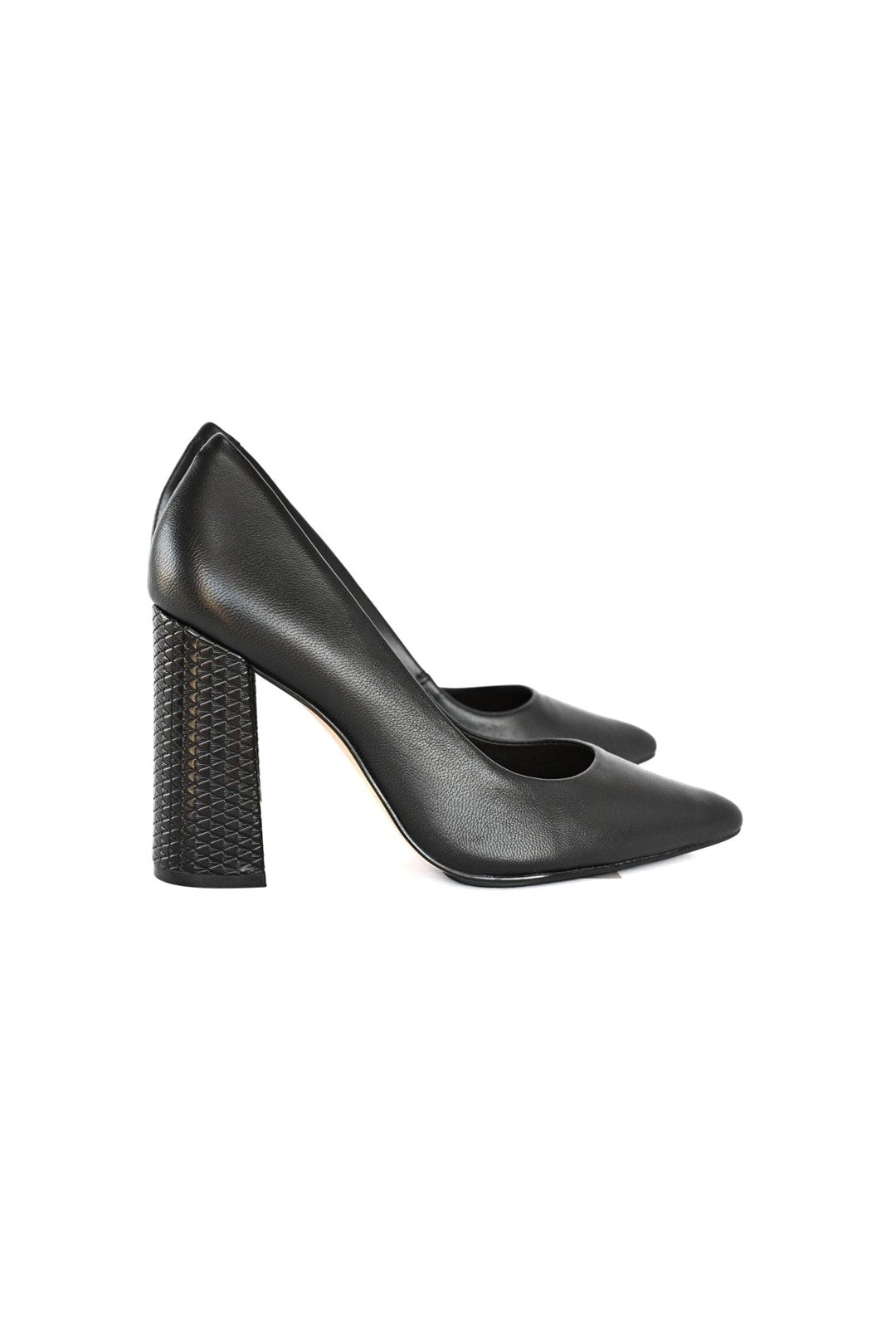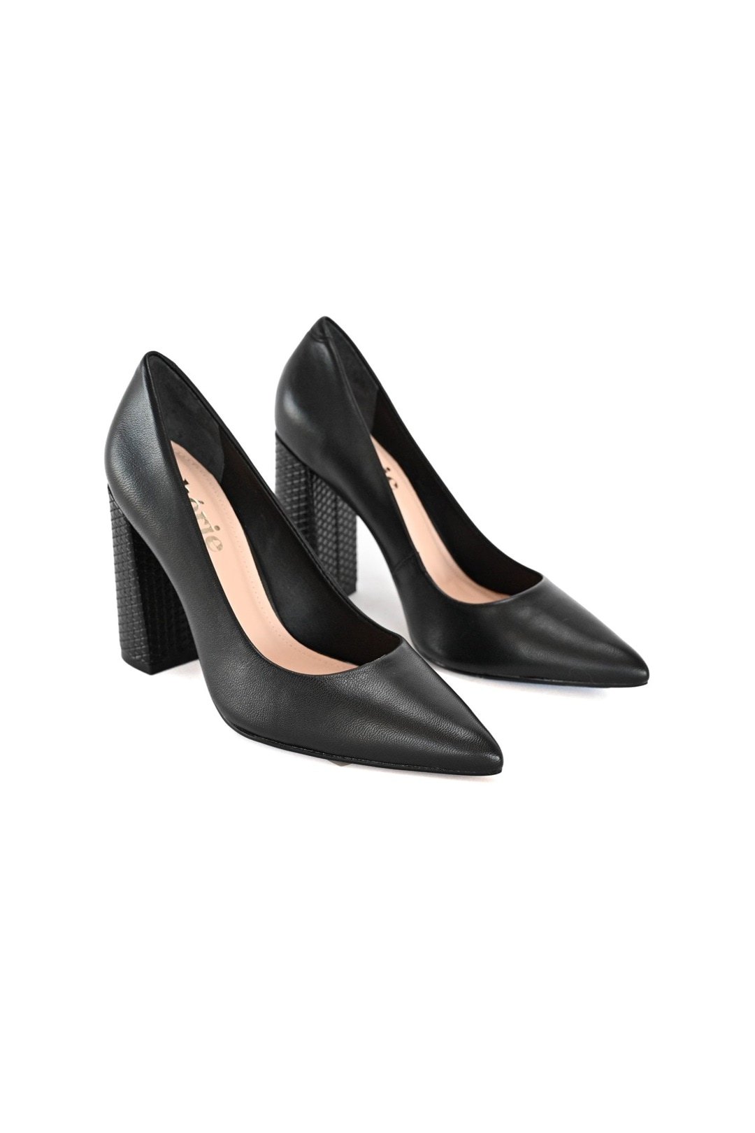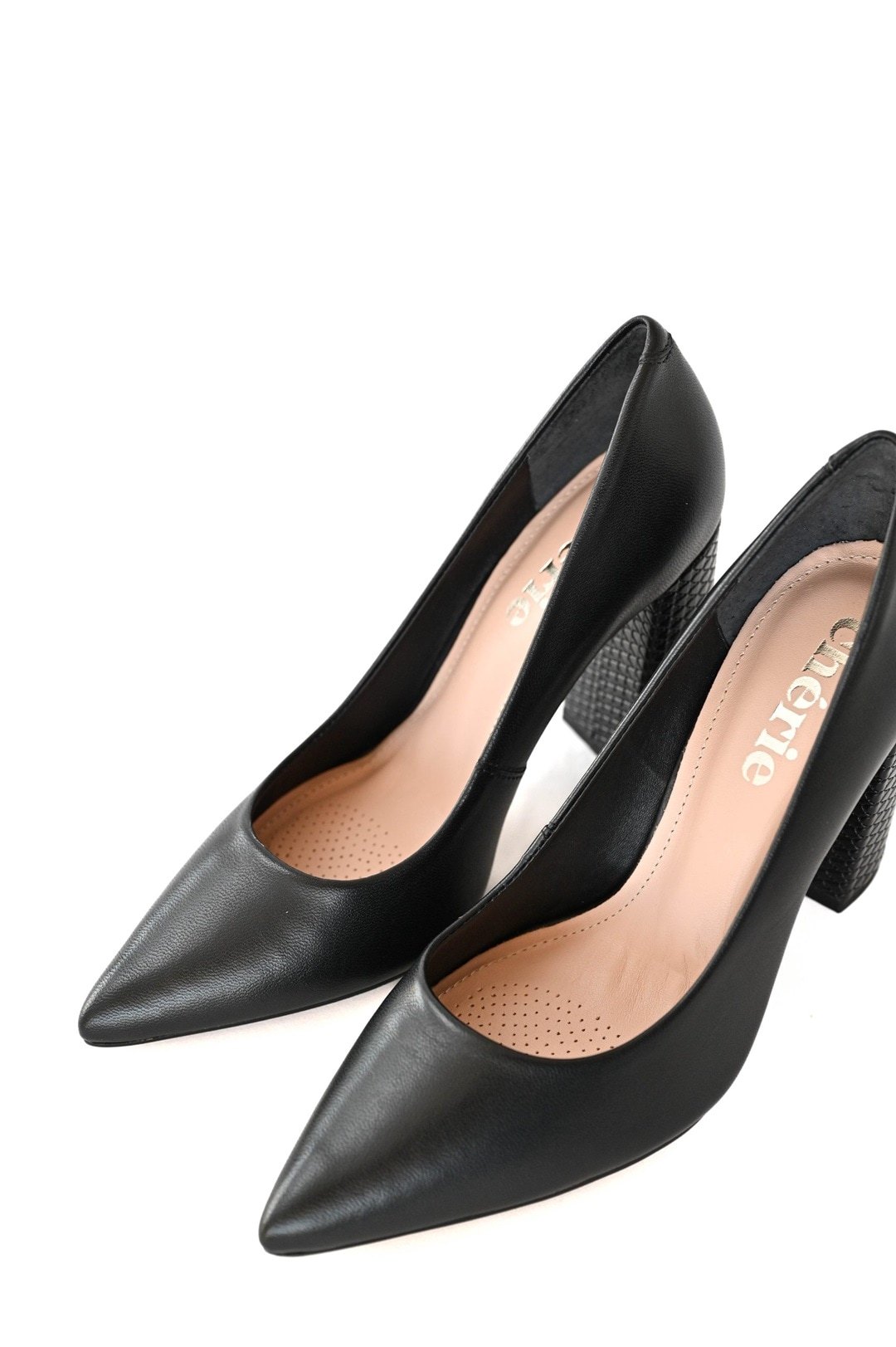 Zapatos que definen tu estilo: Domina la escena urbana uruguaya con estos stilettos negros de cuero liso y un imponente tacón bloque texturizado. Su diseño clásico de punta afilada irradia una elegancia poderosa y moderna, perfectos para destacar con sofisticación en cada paso que des desde Montevideo hasta Punta del Este.