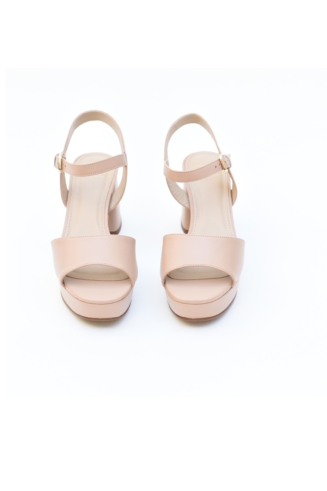 Sandalia minimalista y estilosa en cuero, con capellada y plataforma forradas para un look sofisticado.