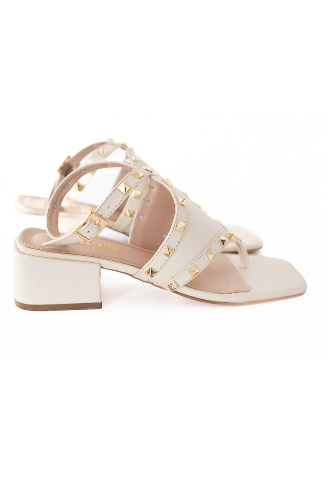 Las Sandalias Kina Offwhite son la elección ideal para añadir un toque de sofisticación moderna a tus looks. Confeccionadas en material cuero de alta calidad en un tono offwhite versátil, estas sandalias destacan por su diseño minimalista realzado con pequeñas tachas doradas que aportan un brillo sutil. Su taco bajo y cuadrado ofrece comodidad y estabilidad, mientras que su diseño de tira entre los dedos y correa ajustable en el tobillo garantizan un calce seguro y elegante.