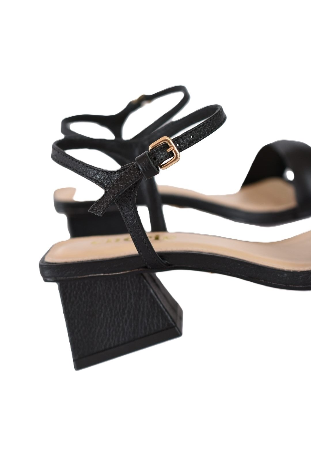 Eleva tu estilo con la versatilidad atemporal de estas sandalias en cuero negro. Su diseño minimalista presenta una tira ancha, pulsera delicada al tobillo y un tacón bloque aproximadamente 5 cm, ofreciendo una combinación perfecta de sofisticación clásica y comodidad para tus looks en Uruguay.