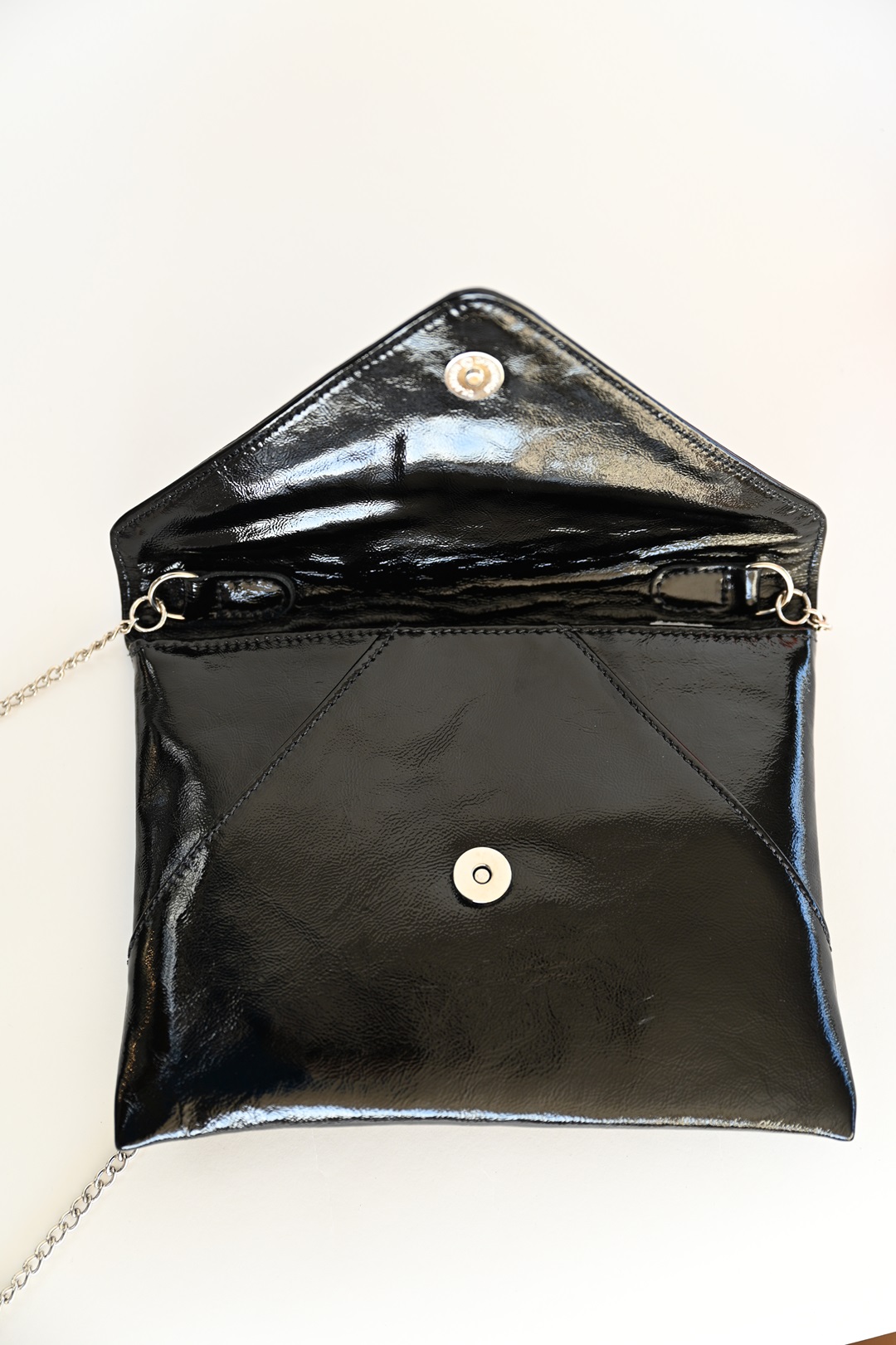 ¡Deslumbra en tus noches con la elegancia del Sobre Party Charol Negro!