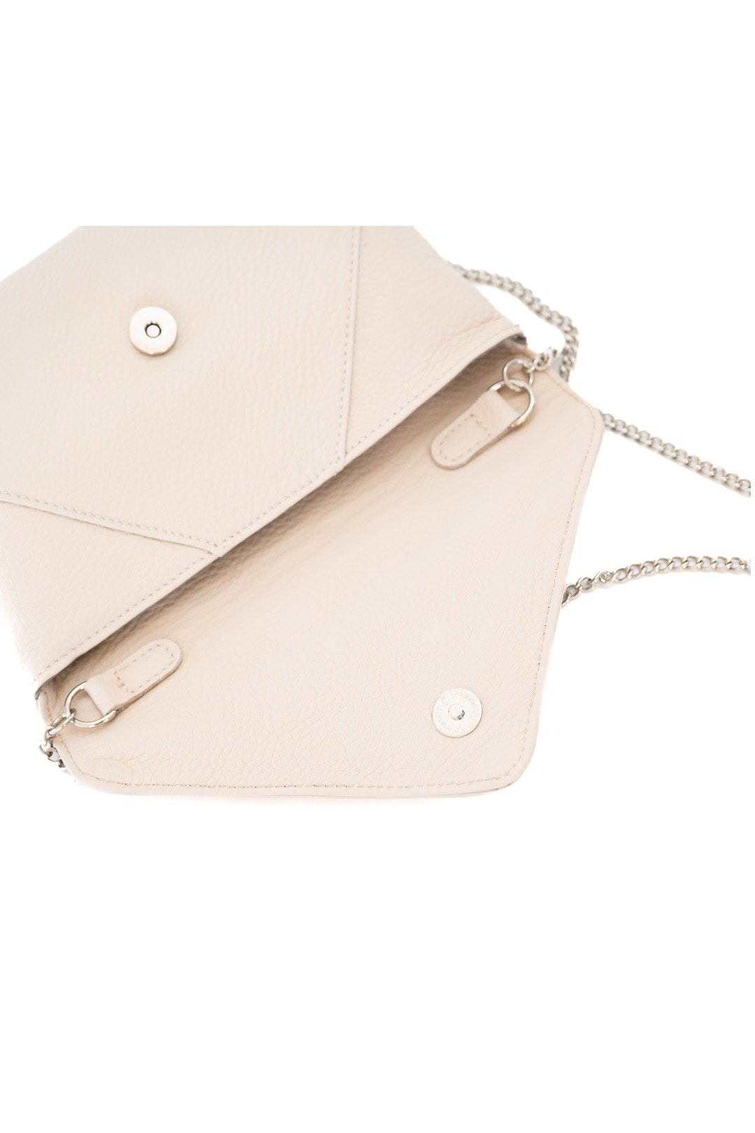 Asa: Asa de cadeneta metálica, que agrega un toque de lujo y permite usarla como bolso de mano o colgarla al hombro.