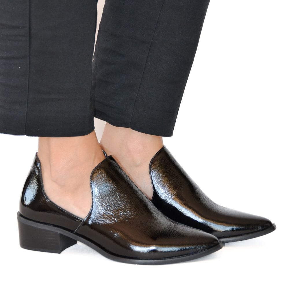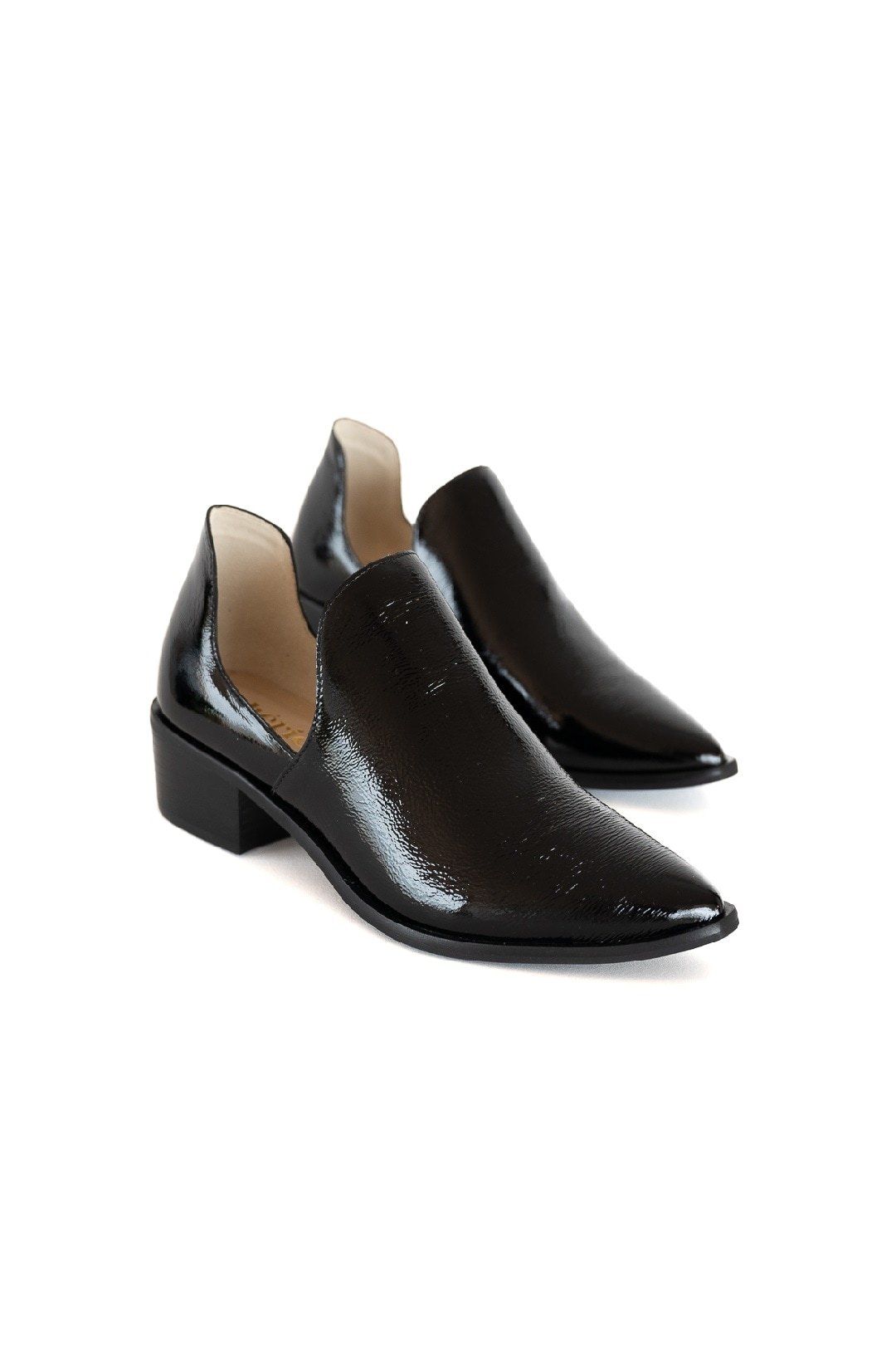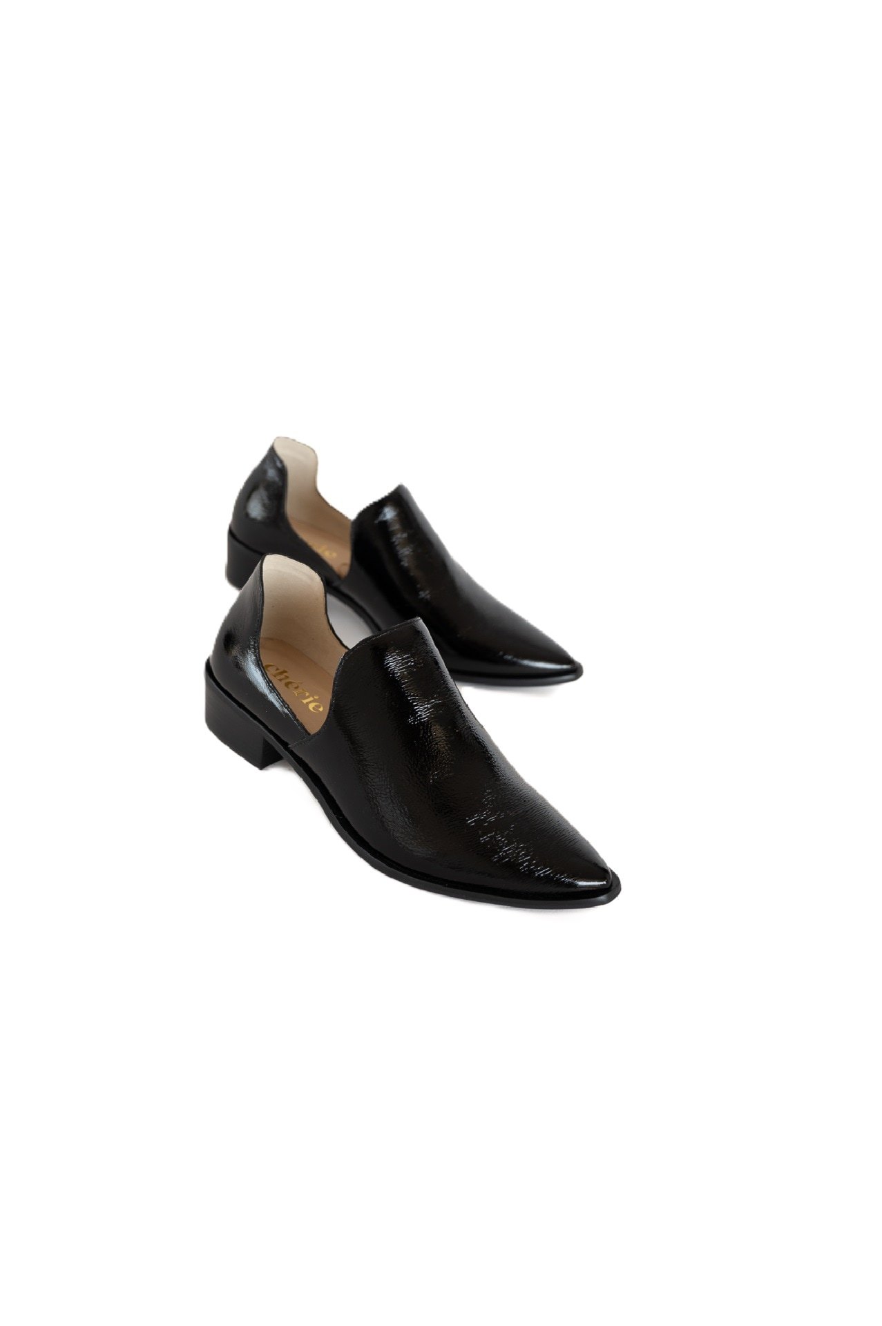 Exterior: 100% Cuero charol negro con acabado brillante: Un toque distintivo que realza la silueta y agrega una cuota de impacto visual.